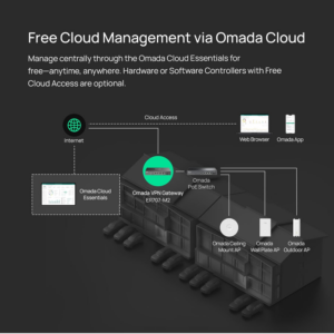 - Cloud centralized management and Omada app for ultra convenience and easy management