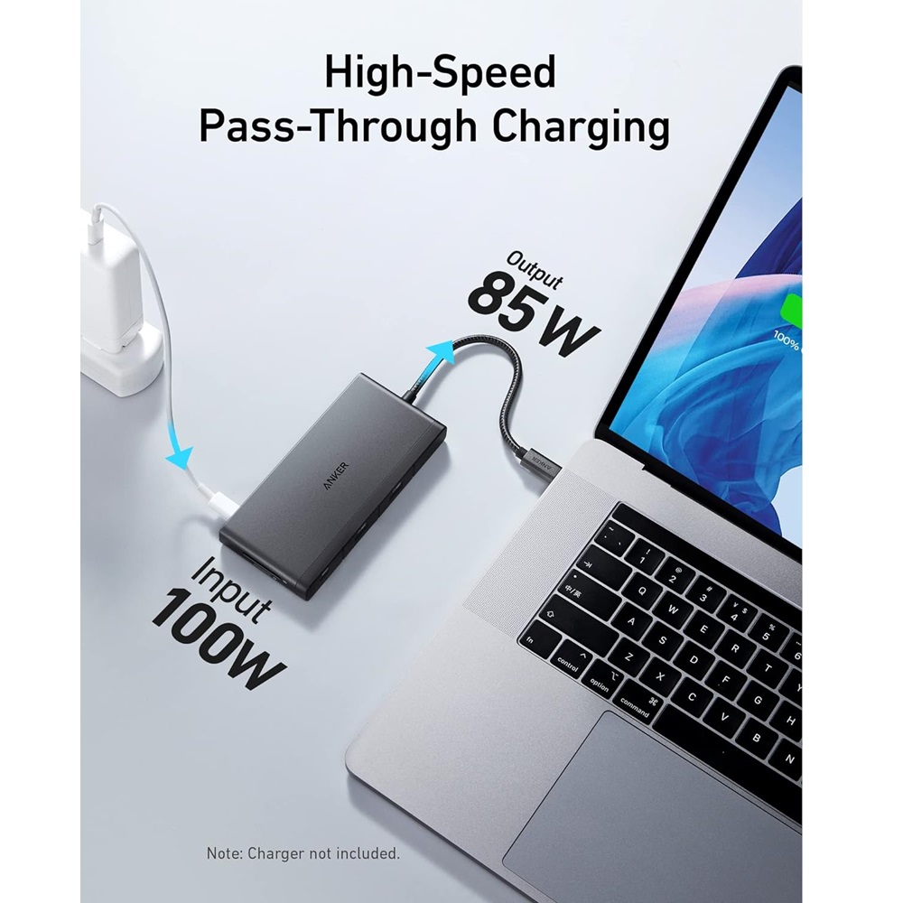 - Powerful Pass-Through Charging: Supports up to 100W (minus 15W for operation) pass-through charging so you can power up your laptop while you use the hub. Note: Pass-through charging requires a charger (not included).