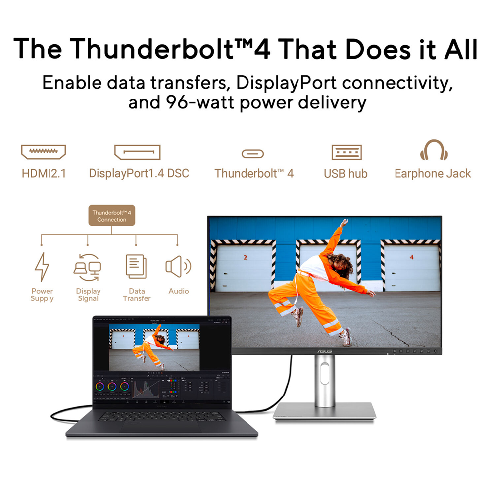 - Rich connectivity including dual Thunderbolt™ 4 up to 96W Power Delivery with daisy-chaining, HDMI(v2.1), DisplayPort1.4 and a built-in USB Hub