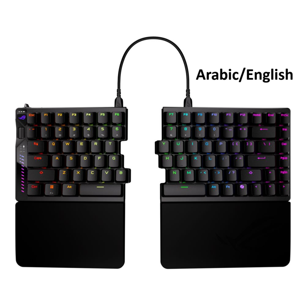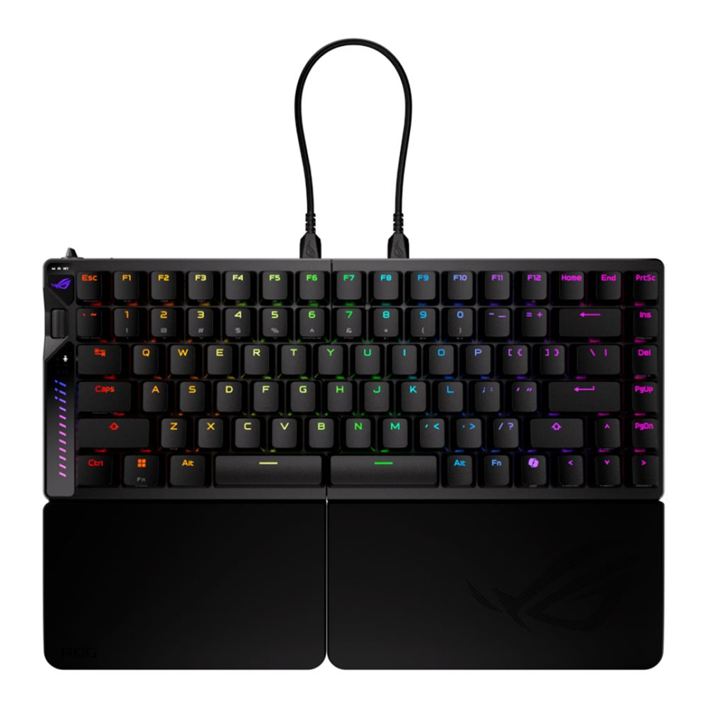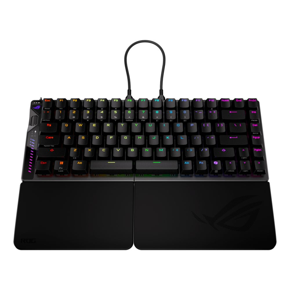 ROG Falcata 75% split gaming keyboard with hot-swappable ROG HFX V2 Magnetic Switches and ROG Hall Sensor; featuring Rapid Trigger toggle, intuitive control and multi-function wheel, tri-mode connectivity with ROG SpeedNova 8K wireless technology, Zone Mode, four-layer dampening and detachable silicone wrist rests