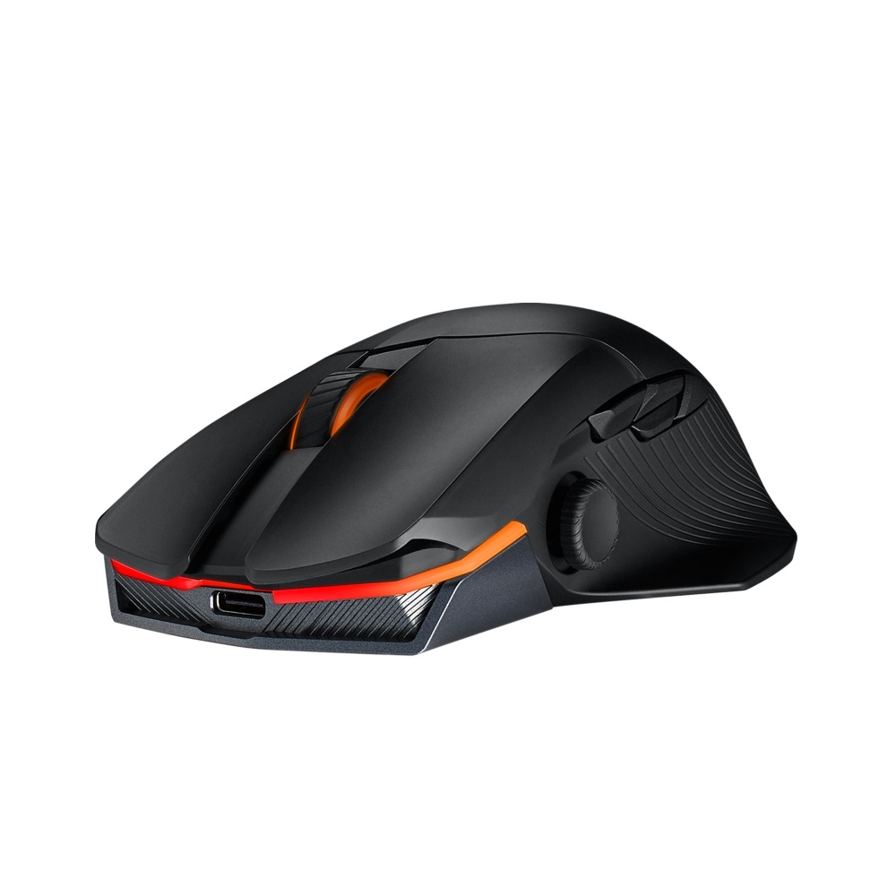 Connect the ROG Chakram X Origin any way you want: go with the ultrafast wireless RF 2.4 GHz mode, pair up to three devices with Bluetooth® fast pairing technology, or fast-charge while dominating a game with the wired USB mode.