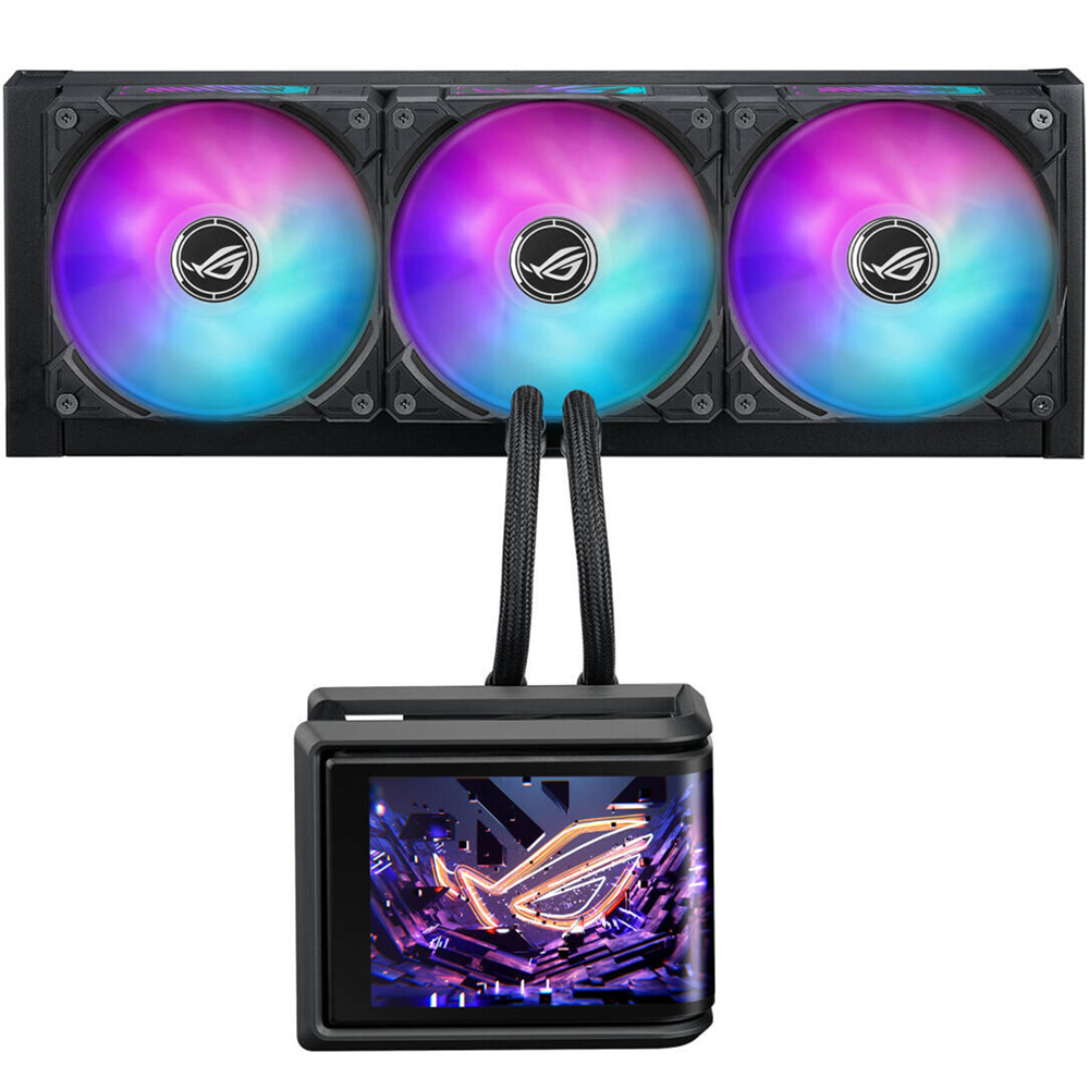 ROG Ryuo IV SLC 360 ARGB features a 6.67-inch AMOLED display, enabling intuitive control through dedicated software to smoothly display 3D videos, customized content, or hardware information. The innovative curved-screen design breaks the boundaries between the virtual and the real. The shorter 200mm tubing and a sliding LCD panel also reduce component obstruction, maximizing the visual experience. The powerful pump and ROG ARGB fans provide stable cooling performance for CPUs, including the AMD Ryzen™ 9000 series and Intel® Core™ Ultra processors.