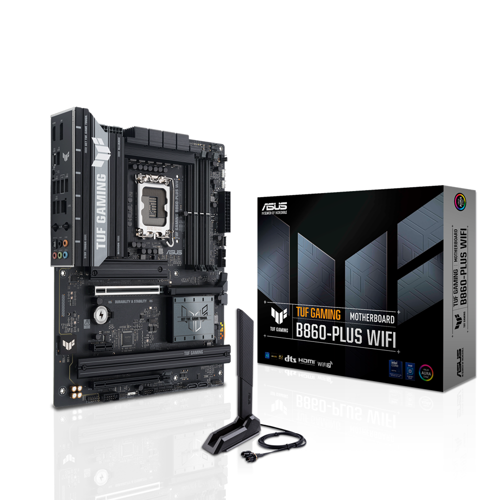ASUS TUF GAMING B860-PLUS WIFI takes all the essential elements of the latest Intel® Core™ Ultra Processors (Series 2) processors and combines them with game-ready features and proven durability. Engineered with military-grade components, an upgraded power solution and a comprehensive cooling system, this motherboard goes beyond expectations with rock-solid and stable performance for marathon gaming. TUF GAMING motherboards also undergo rigorous endurance testing to ensure that they can handle conditions where others may fail. This platform delivers the power and connectivity that advanced AI PC applications demand.