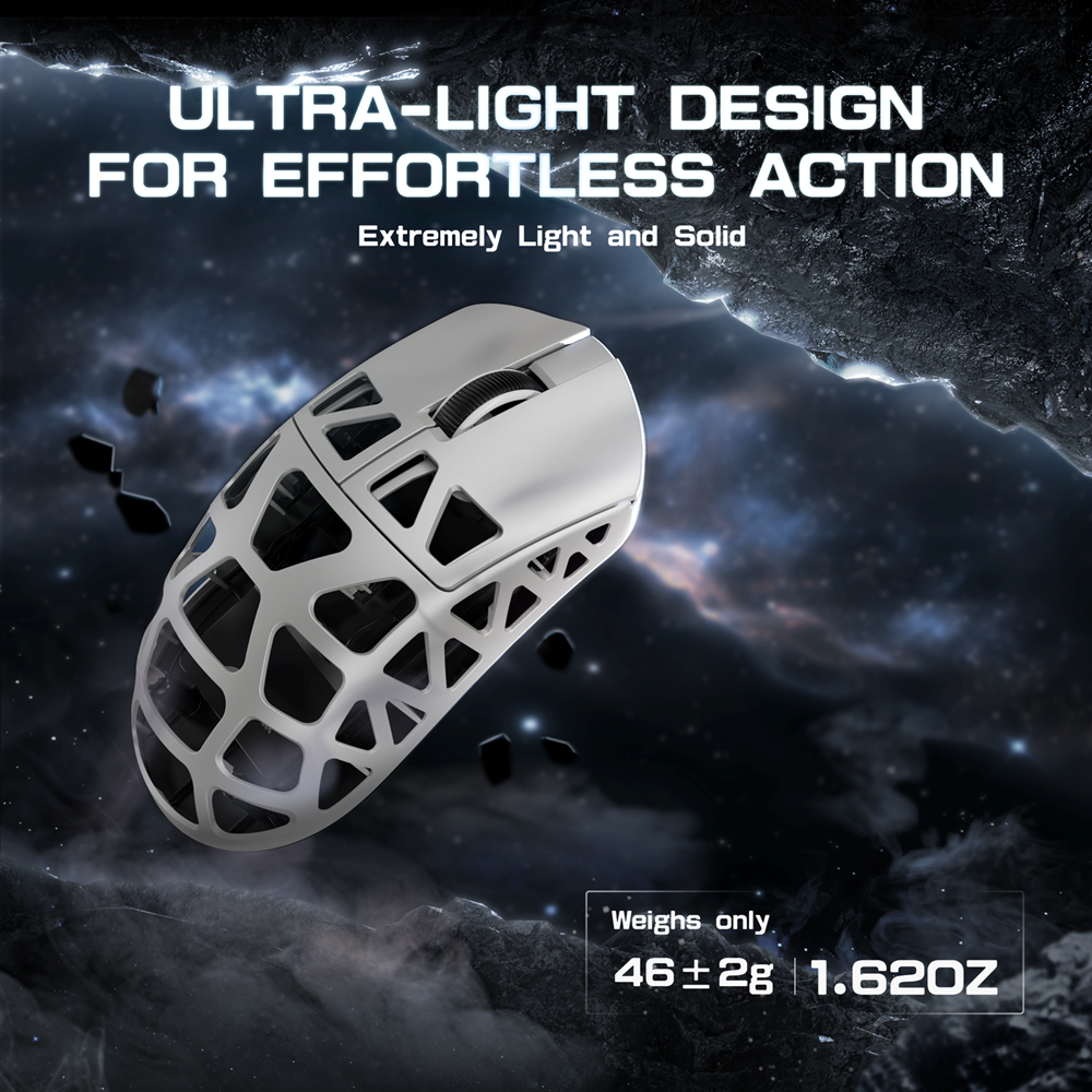 Magnesium is the lightest metal material for structure. The R3 adopts this premium metal while crafted with a CNC-integrated metallic frame for perfect visual appeal and great comfort. And don’t overlook the hollowed-out design, not only lending the mouse a unique aesthetic but also guaranteeing optimal airflow, ensuring your grip stays cool even during the most intense gaming sessions.