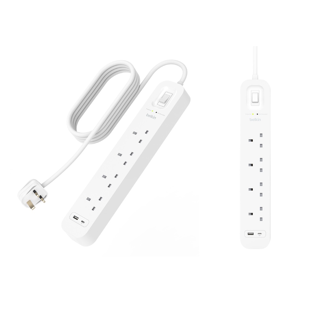 - 4 AC outlets with USB-C and USB-A ports allow for easy expansion