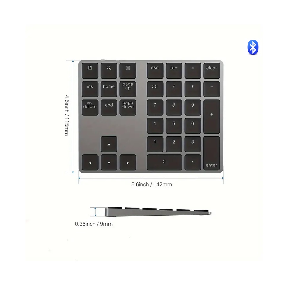 Bluetooth Numeric Keyboard Rechargeable Wireless Number Pad Numpad – Black
