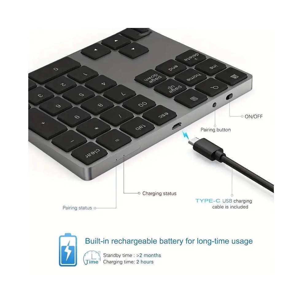 Small and portable, easy to carry, this numeric keypad offers a modern design of round keys, a comfortable and silent design, without noise and has a useful life of up to 10 million clicks, making it easier to count and type in stores, restaurants, companies and much more with this incredible numeric keypad.