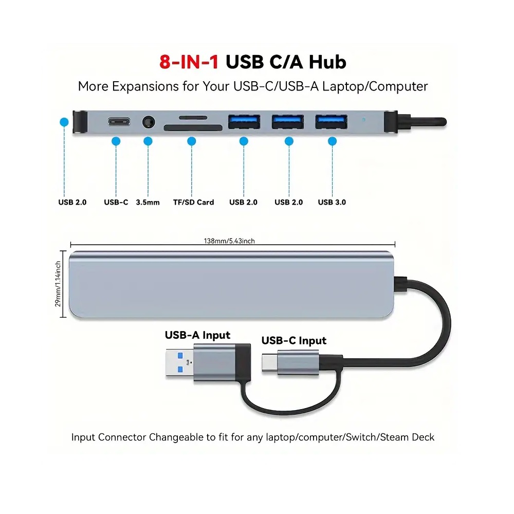 4x USB-A 1x USB-C 1x SD Card Reader 1x TF Card Reader 1x 3.5mm audio output
