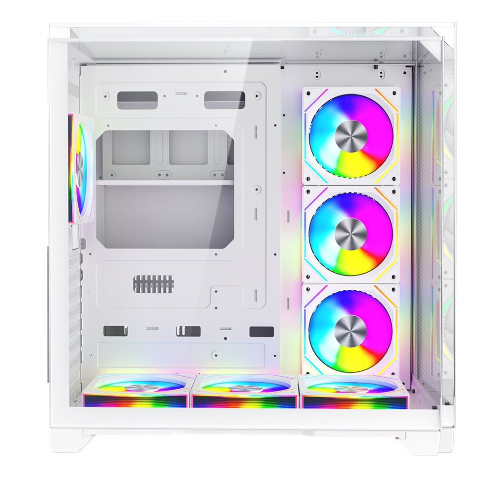 Equipped with support for multiple fans, including three 12cm fans on the side, one 12cm fan at the rear, and three 12cm fans at the bottom, this case ensures optimal airflow. Additionally, it supports 360mm water cooling systems, keeping your components cool under heavy loads. The ARGB+PWM lighting adds a touch of personalization and style to your setup.