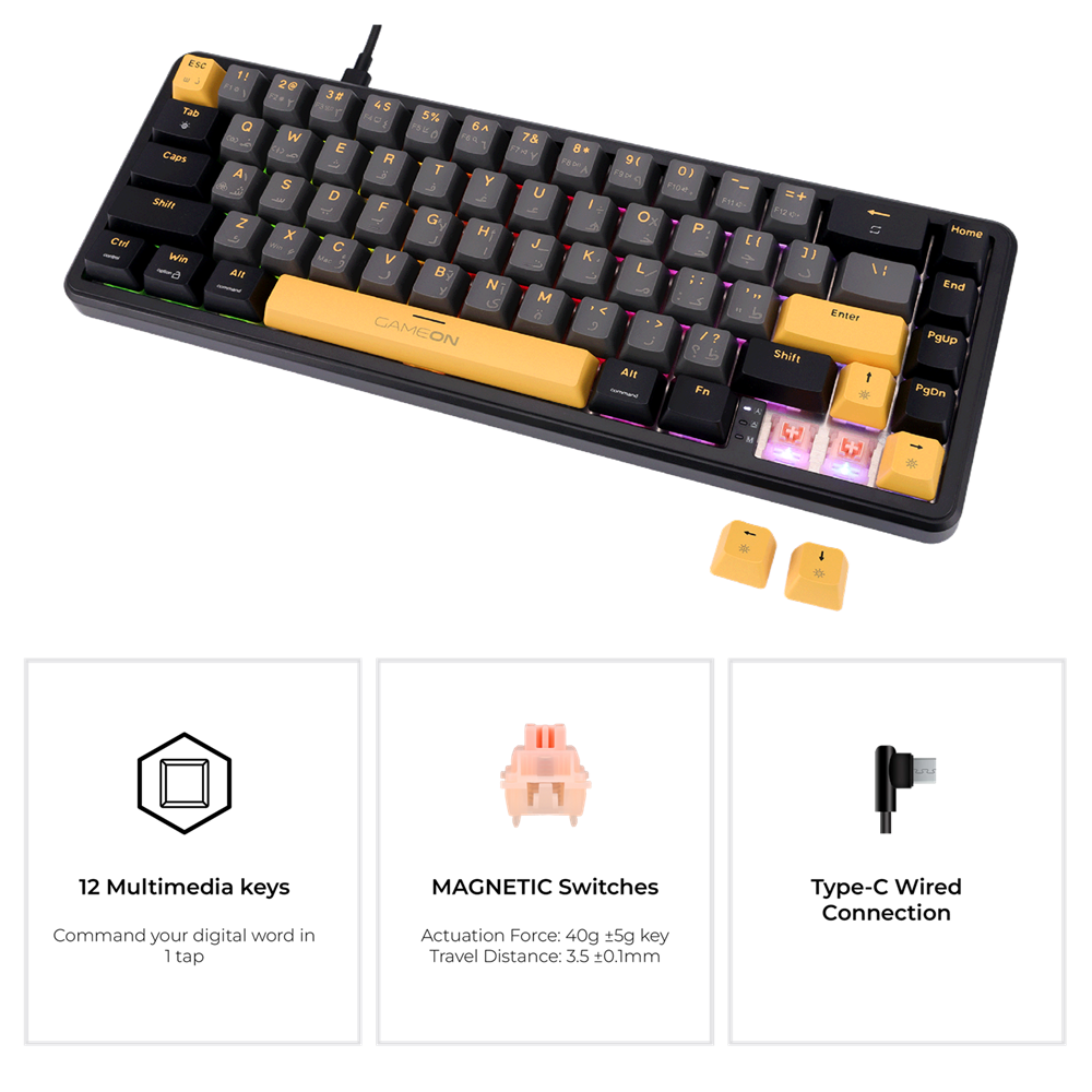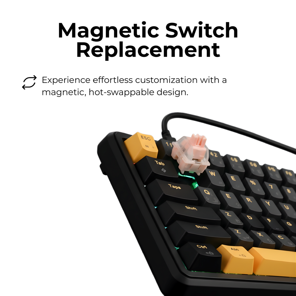 Experience the next evolution of precision with the GAMEON VOLT Series – where speed meets innovation. Equipped with Hall-Effect Magnetic Switches, each key delivers ultra-fast, contactless actuation and seamless response. The magnetic, hot-swappable design allows effortless switch replacement, giving you complete control over your typing and gaming feel.