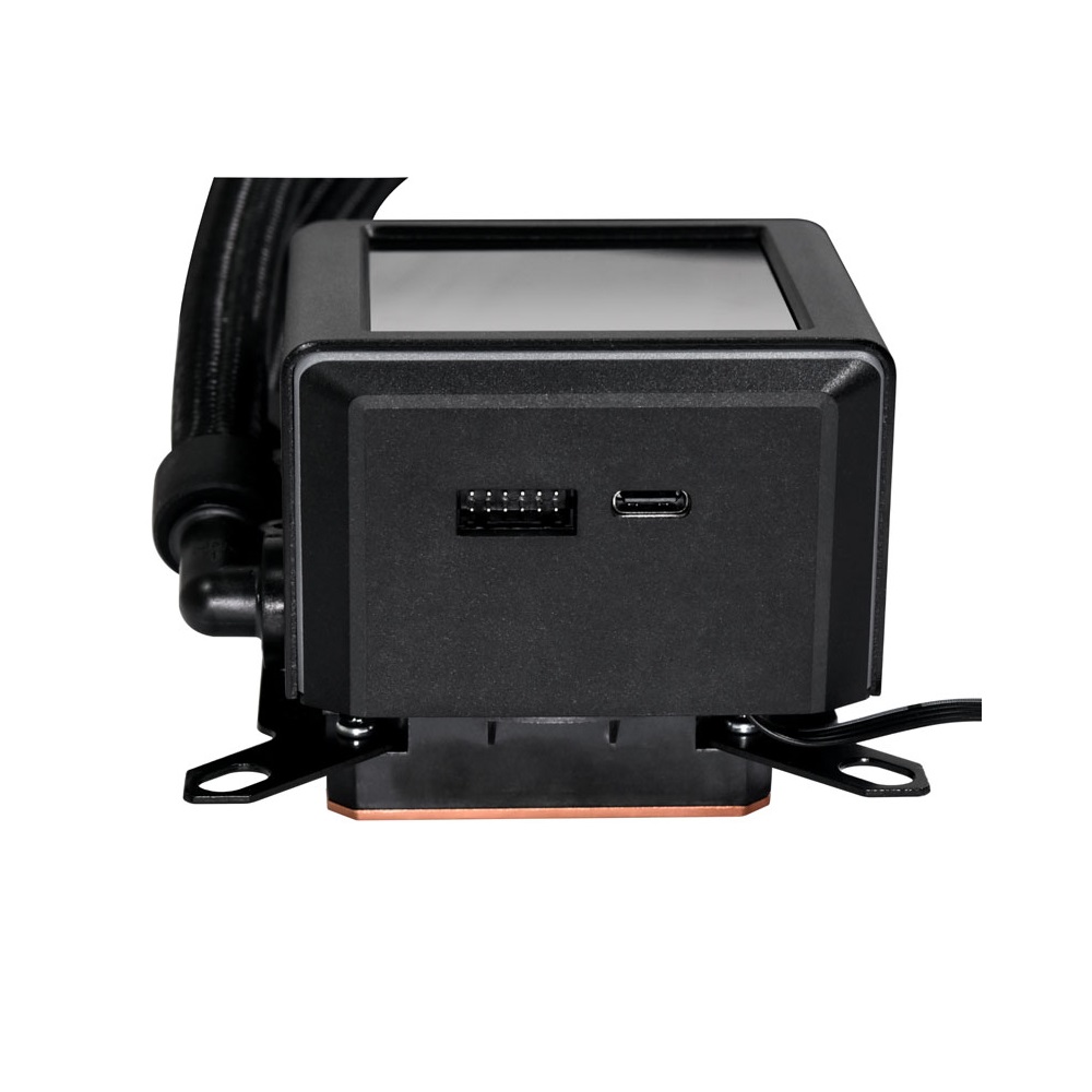 The Galahad II LCD AIO can be controlled through three cables. The pump block features two ports, one is for power via a SATA connection, and the second is a USB Type-C port, allowing for L-Connect 3 integration. In addition to these, the block also has a PWM cable connected, allowing for direct control of both pump and fan speeds through a single header.