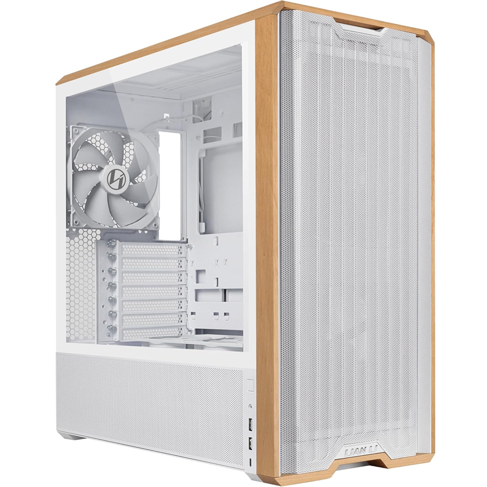 The LANCOOL 217 is a mid-tower case that combines innovative cooling design with real wood accents. It comes pre-installed with five fans, delivering optimized airflow right out of the box. A flexible PSU mounting design makes cable management easier. Available in Black with dark wood accents or White with light wood, it blends natural beauty with high-performance capability.