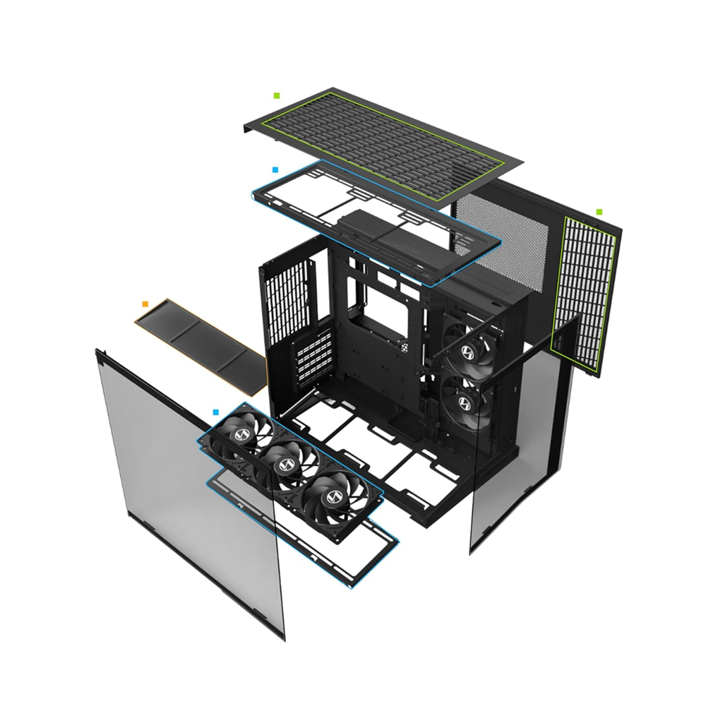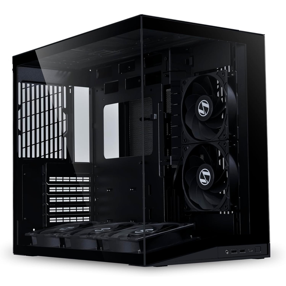 - Pillar-less tempered glass front and side panels for an unobstructed internal view