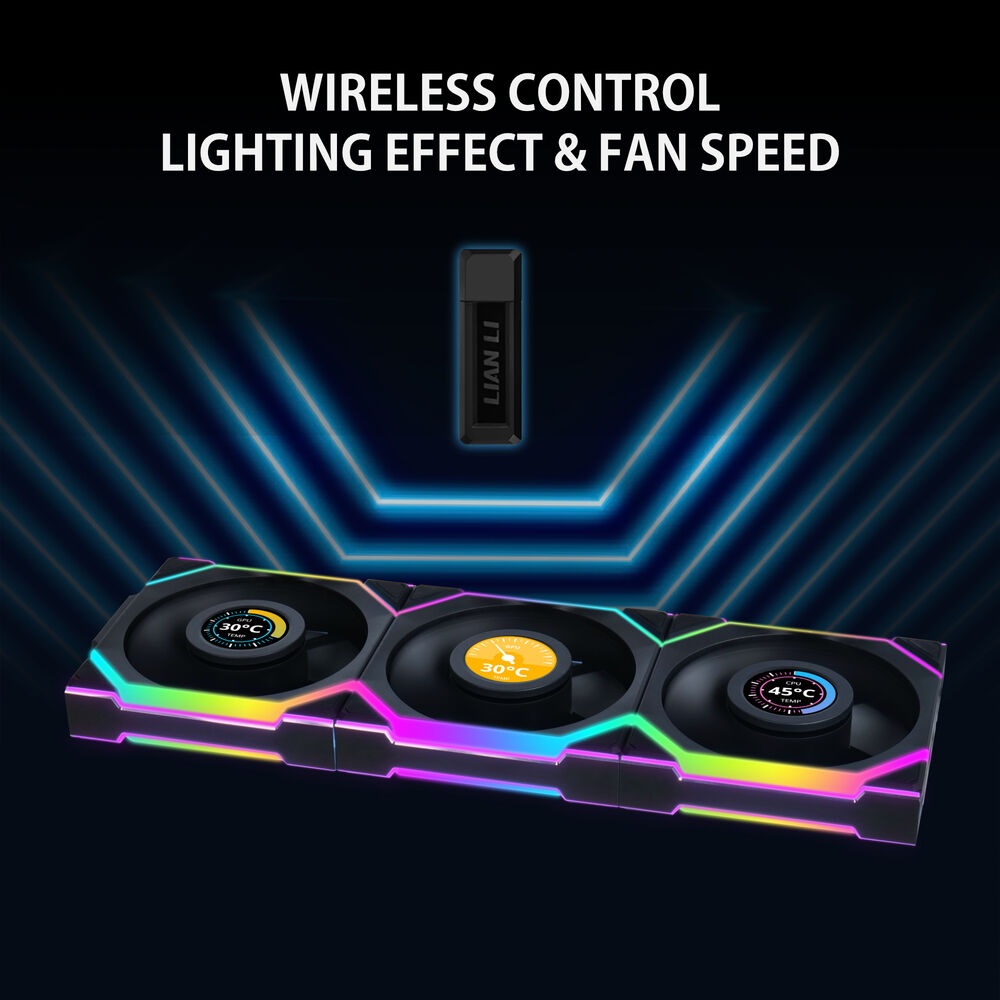UNI FAN SL Wireless LED and LCD now can be mix-matched into a group, empowering users to unleash their creativity and freely combine them.**