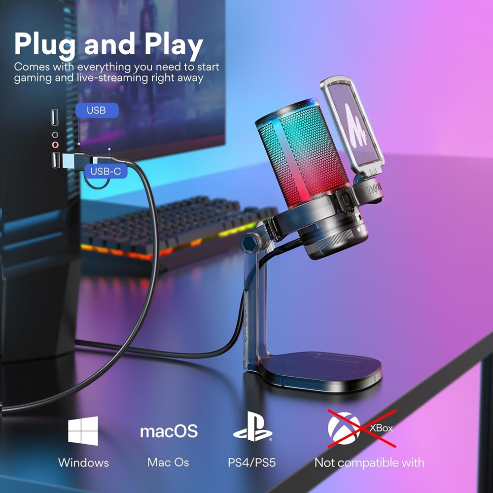 GamerWave USB condenser microphone is specially designed for games, and live broadcasts and The RGB ambient light can be turned on and off anytime you want.