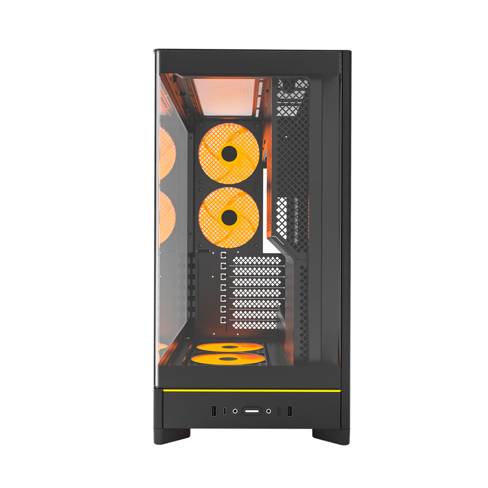 Setting the modern standard for PC case aesthetics, the HS02 features crystal-clear glass panels and a minimalist layout, creating the ideal stage for showcasing your dream build. With flexible building options and a sleek design, it transforms any setup into a true work of art.