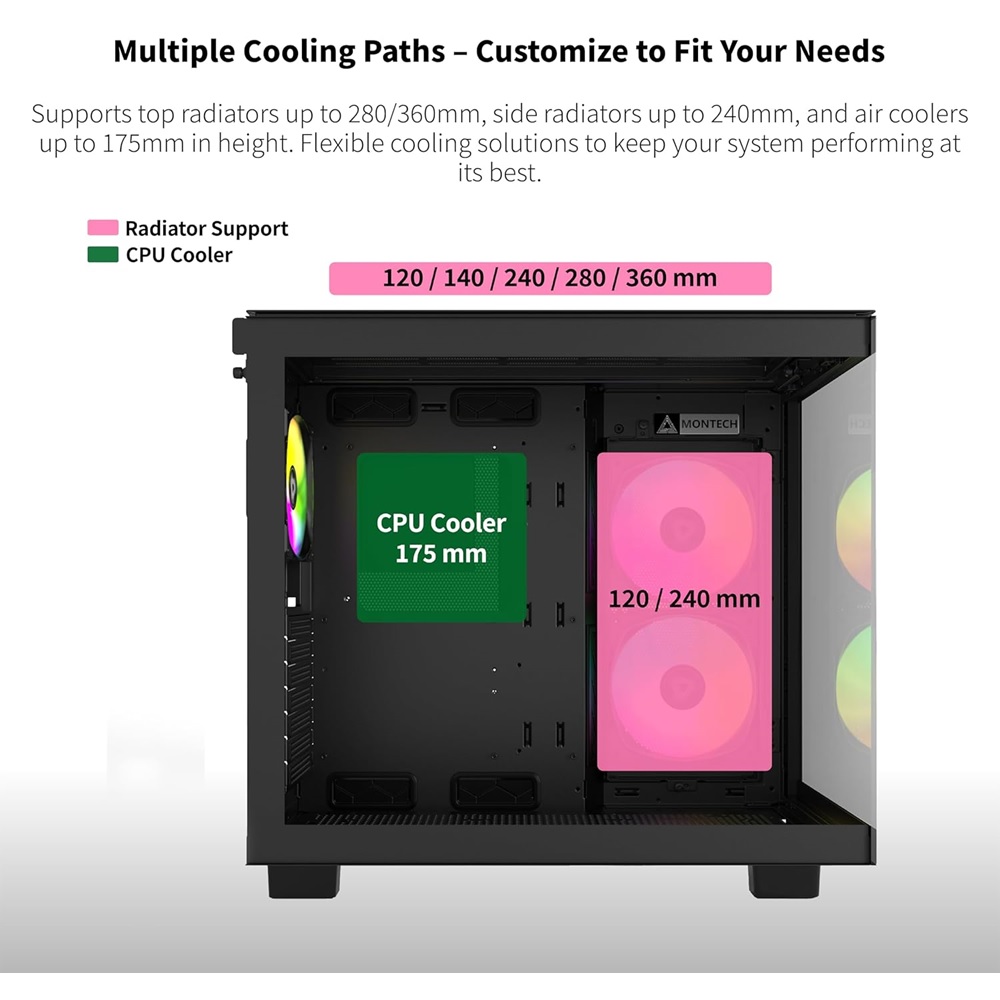 Montech King 65 Pro – Black, ATX Mid Tower Case, 3 Fans