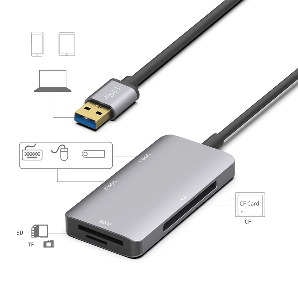 USB 3.0 Hub supports 2-port USB 3.0Hub+ card reading function CF card/TF card/SD card