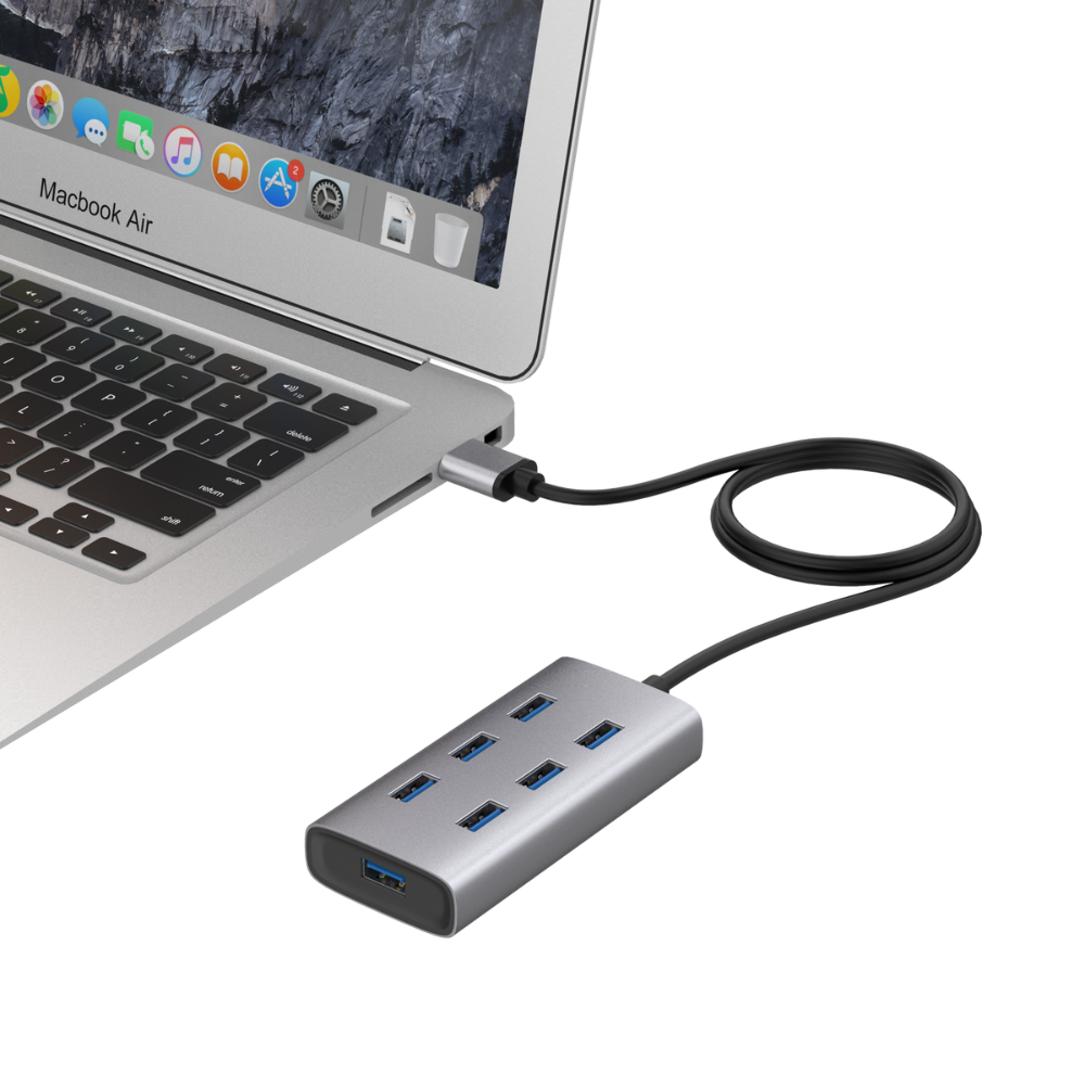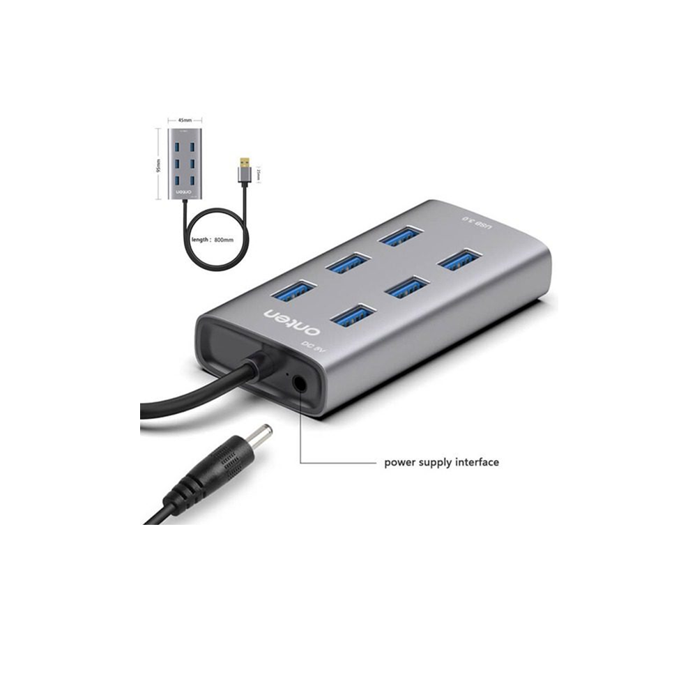 supports 7 ports USB3.0+ DC3.5 female socket (5V power supply) material: Aluminum Alloy high gloss