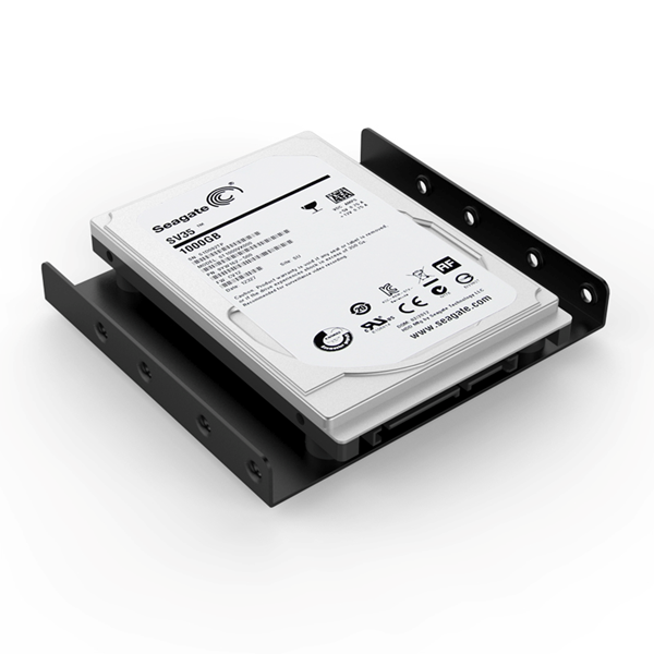 Converts an available 3.5 inch drive bay to accommodate 2.5 inch HDD or SSD.