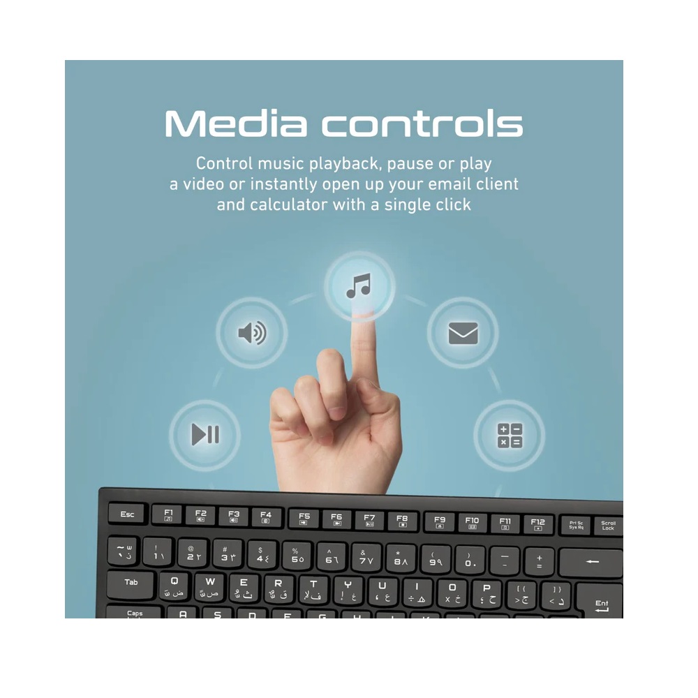 ProCombo-12 combines a full sized keyboard and an ambidextrous mouse. Type and navigate with ease, control music playback, pause or play a video or instantly open up your email client and calculator with a single click. Be in command and get plenty done comfortably with ProCombo-12.