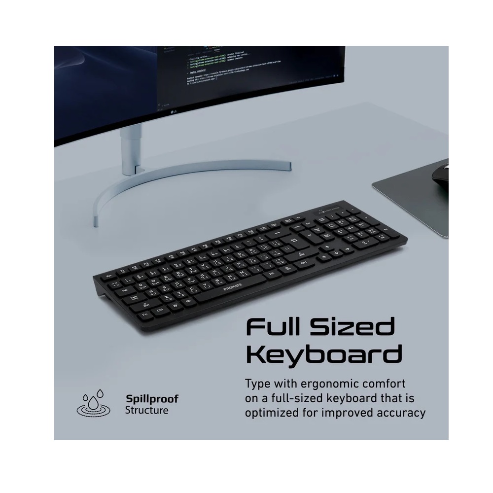 Promate Sleek Profile Full Size Wireless Keyboard & Mouse