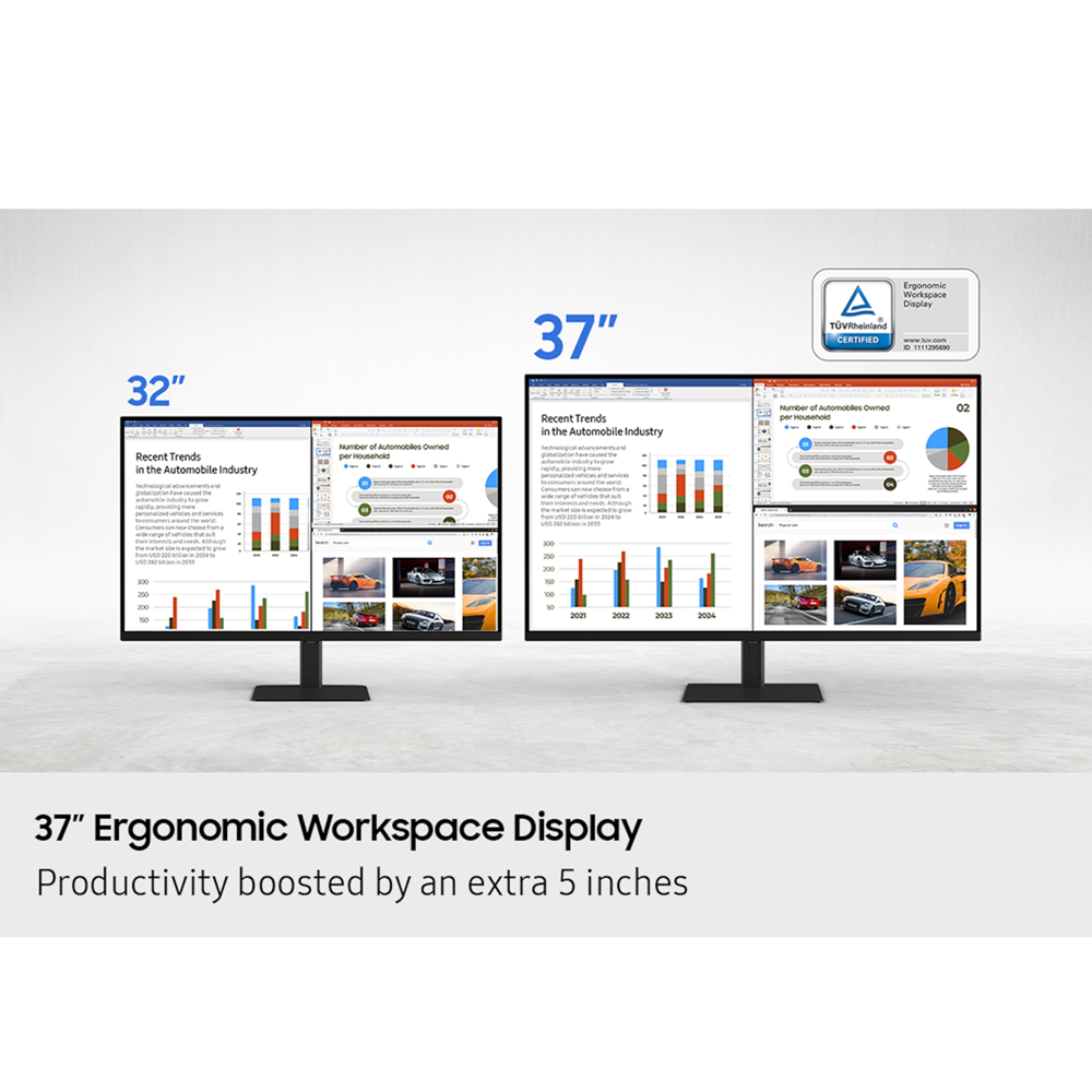 Revolutionize your workspace with the world’s first 37” UHD monitor. The additional 5 inches compared to a 32” display provide a 100% UHD experience without the need to scale down for better readability. With the expanded workspace, you can tackle complex tasks with ease and boost your productivity. Plus, the 37” screen is TUV-certified for eye comfort and designed to reduce visual fatigue — helping you stay focused during long work sessions.