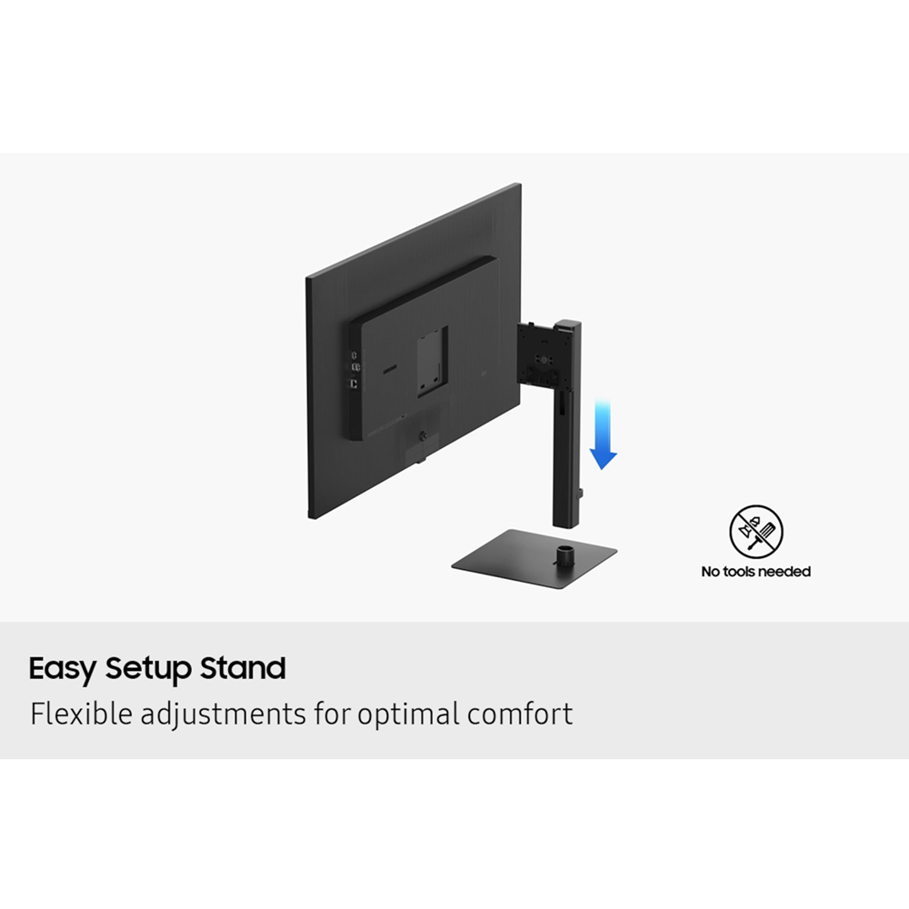 The Easy Setup Stand effortlessly creates an ideal workspace without any tools or screws. When it’s time to change things up, simply push a button and enjoy flexible convenience.