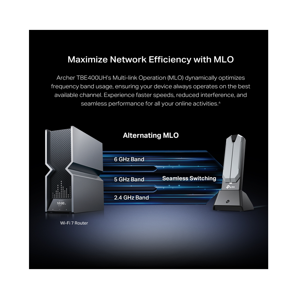 Armed with Wi-Fi 7 technology, Archer TBE400UH is designed to deliver a huge boost in coverage, speed, and total capacity. Enjoy the future network that loads faster and connects more.