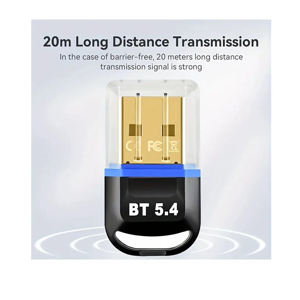 This Bluetooth 5.4 adapter enables easy wireless communication between computers, telephones, headphones, speakers, mouse and keyboard, PDA, digital camera, printers, controllers and other Bluetooth devices in your home. The built-in Bluetooth 5.4 antenna gives a stable and strong wireless signal up to 20 meters.
