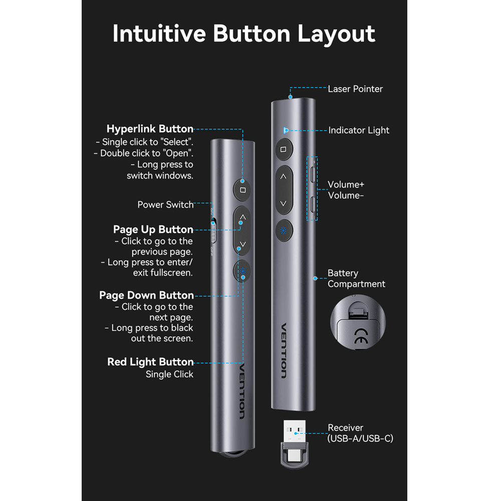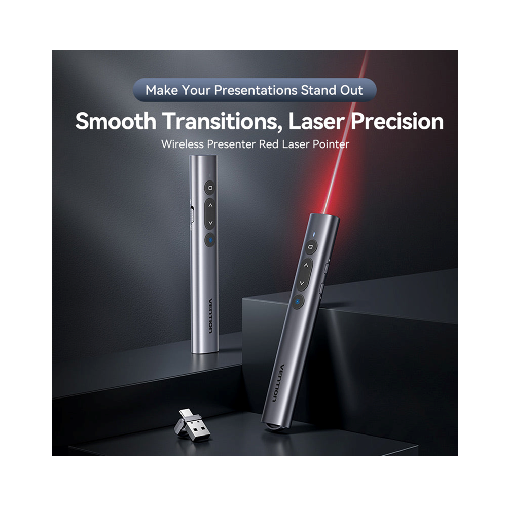 Vention KQI Wireless Presenter Red Laser Clicker Pointer, 100m, USB-A, USB-C