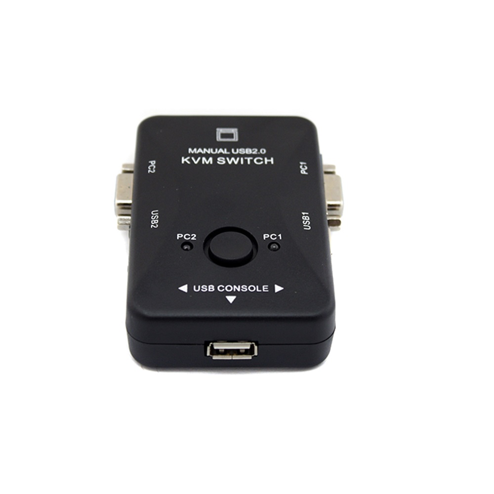 The switch is controlled using a button located on the case. If two computers are connected to the switch, pressing the button switches from one computer to another.