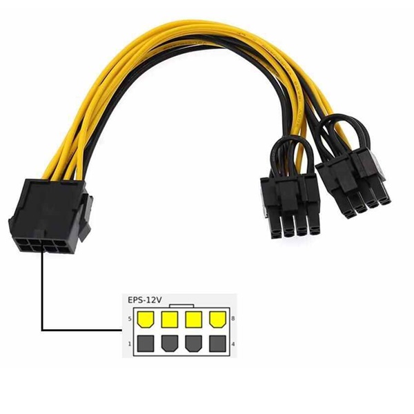 - Processor 8pin to dual PCIe 8pin GPU power adapter