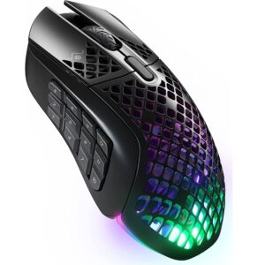 SteelSeries Aerox 9 Wireless Ultra Lightweight Super Fast MOBA/MMO Gaming Mouse with AquaBarrier 18 Buttons – 89g